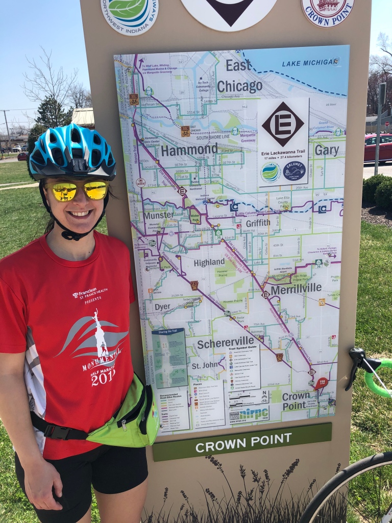 It seems as though the season has finally turned to springtime with days of fresh rain and sunshine. With the warmer weather on our faces, we commenced our goal to bike the network of trails weaving through the Lakeshore area. We obtained a copy of the Northwest Indiana Greenways and Blueways map from our local library and checked off the Prairie Duneland trail that we had already completed last fall out of Chesterton. On Easter Sunday, the sun was out and the air was warm; so we pumped our tires and filled our bellies with a hearty lunch to fuel us for a long ride on the Erie Lackawanna trail.