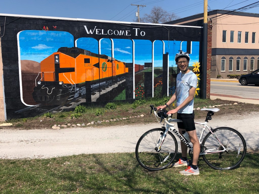The trail was popular with runners, walkers, and dogs with their owners pushing strollers. We passed families on wheels, rollerbladers, enthusiast cyclists, and were ourselves passed by many a semi-professional cyclist burning out their legs as they called ahead “on your left!” It was even with great curiosity that we witnessed pelotons in geese-like formation with matching uniforms calling out to each other and transitioning lead riders as they flew with the speed of a wind tunnel rushing past us. With the groups of peloton cyclists riding from the north end and our close proximity to the Chicago area, we knew that the Erie Lackawanna must be a travel destination for those who love to ride.