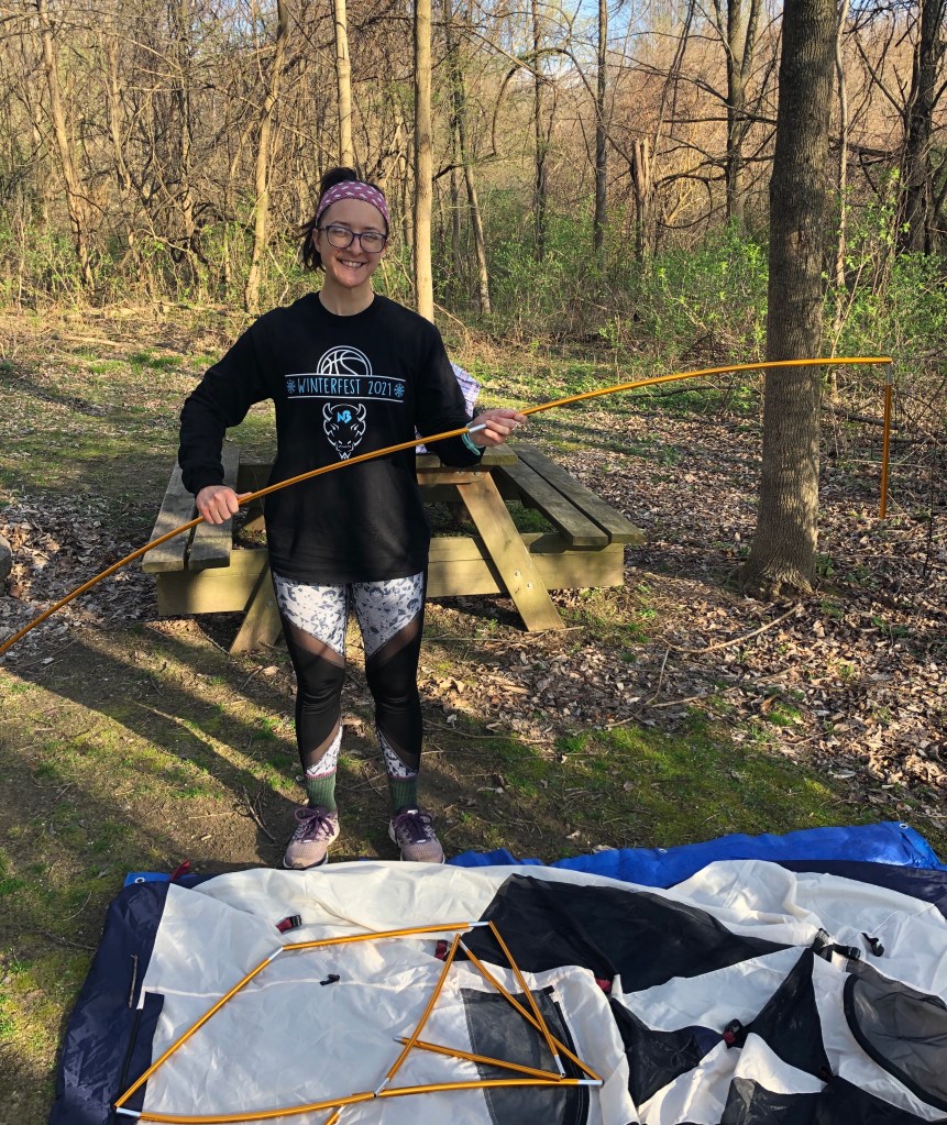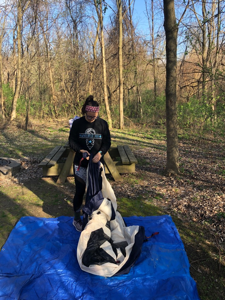 We realized that we could still have the nostalgic camping experience without having to put a lot of preparation into it. Sunset Hill Farm County Park has a campground that is less than fifteen minutes away from our home. It was almost like camping in our backyard. We didn’t have to plan weeks in advance for travel, reservations, food, or packing up our bags for the weekend. After some paperwork with the Valparaiso Parks and Recreation and payment of $15.00, we were setting up our site the very next day after the Friday work day.