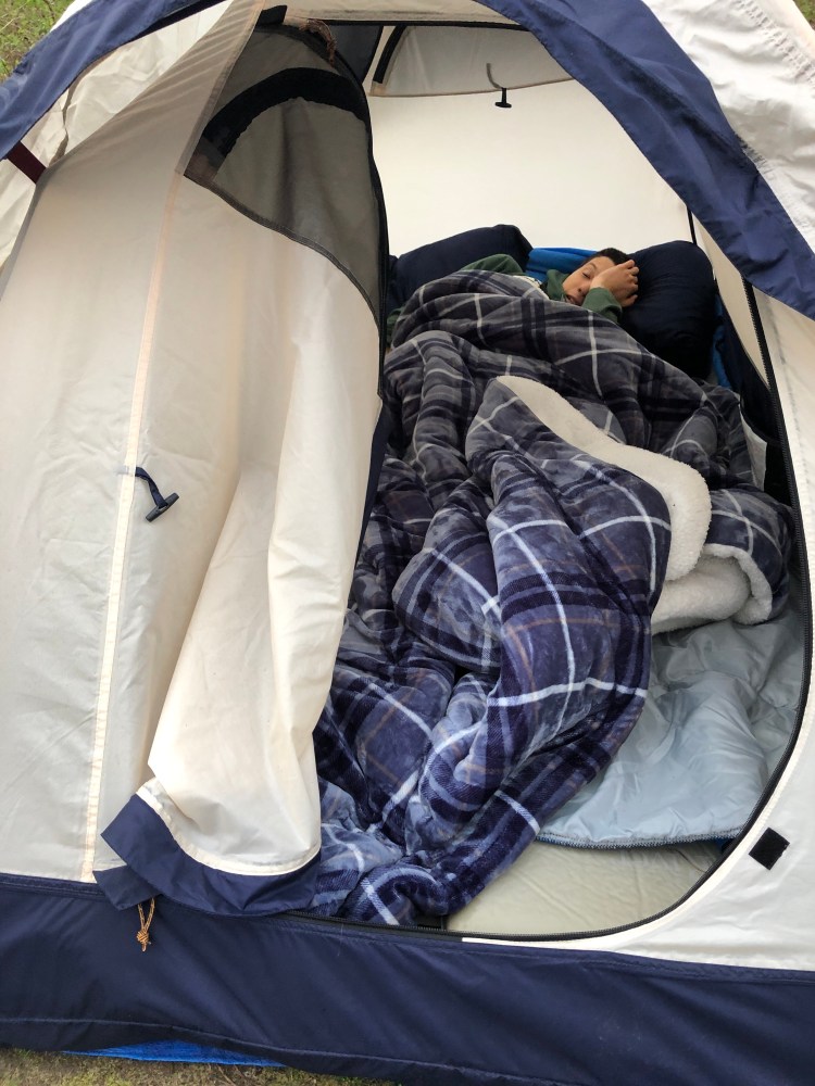 This had to be one of our best campfires of all time with just the right conditions to continue throughout the evening. We roasted marshmallows and ate S’mores until the glow faded into the coals. I pushed the dirt from the bottom of the pit over the logs before drenching the remaining flickers with water so we knew that our fire was completely out. The two-person tent was a cozy spot to cuddle together with our books before switching off the flashlights. There’s no place like home, unless you are camping together.