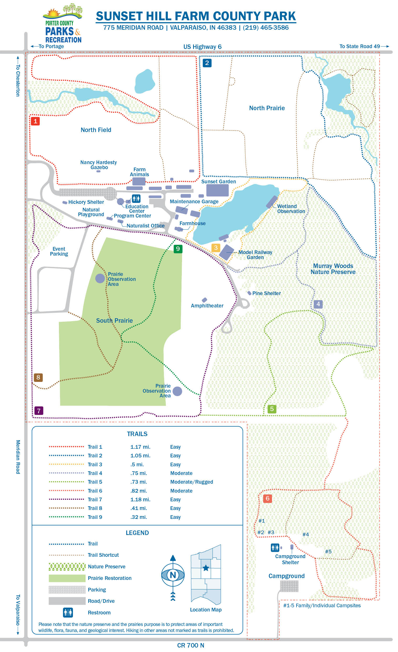 Sunset Hill Farm campground is on the property of the county park connecting to challenging hiking trails that loop over an expanse of 238 acres of forest preserve and open prairie. There is also a small functional farm where goats, sheep, and geese sunbath in their pens. For all of our running friends, we would like to emphasize the word hill at this location because a trail run at Sunset Hill Co. Park is an incredible workout.