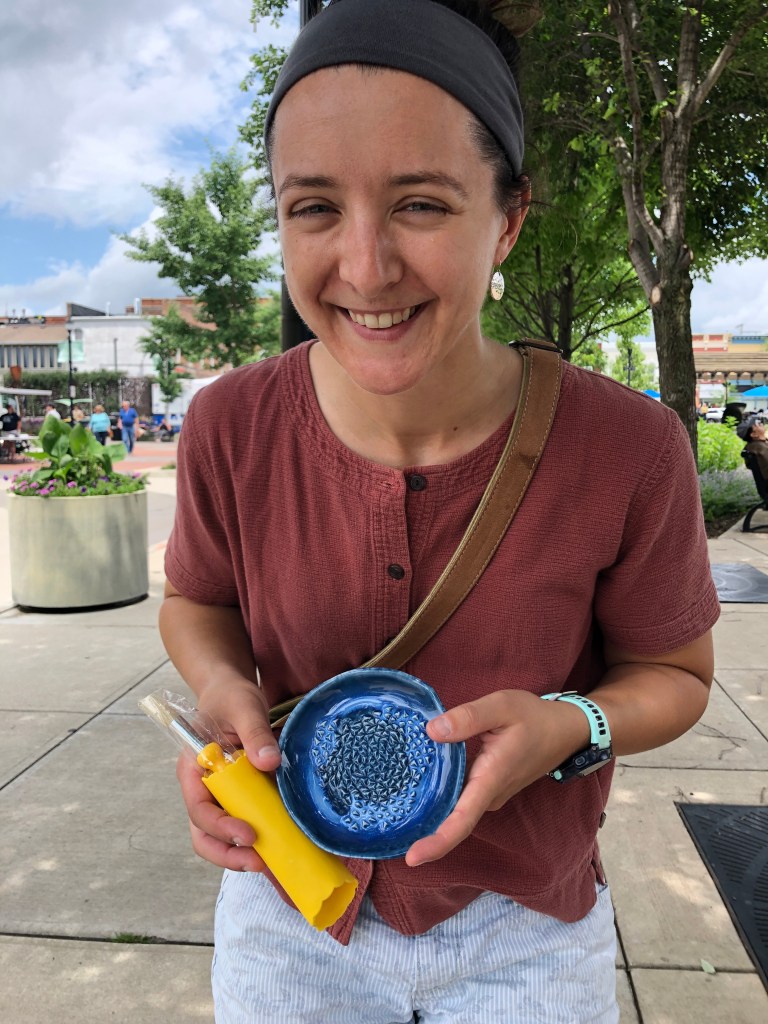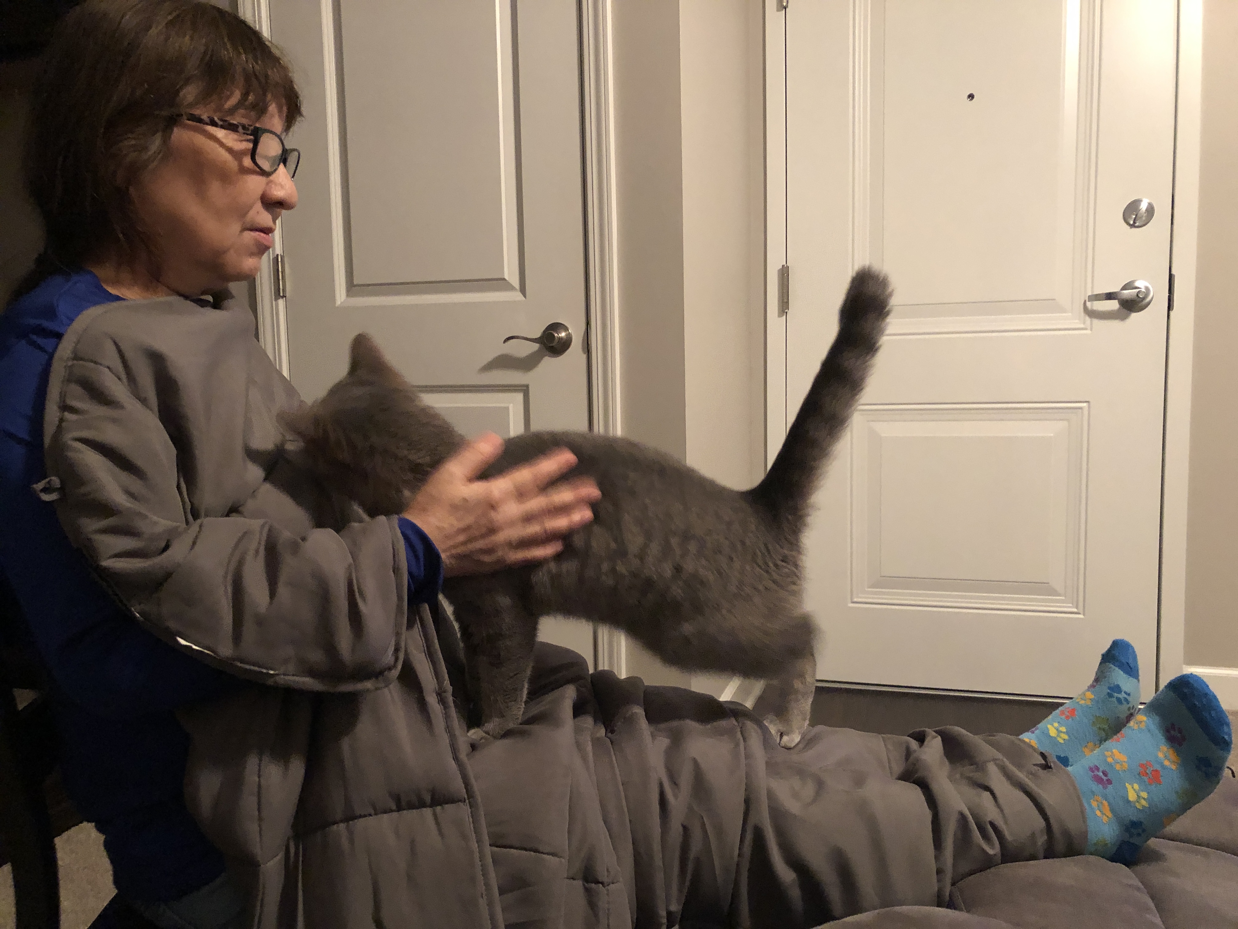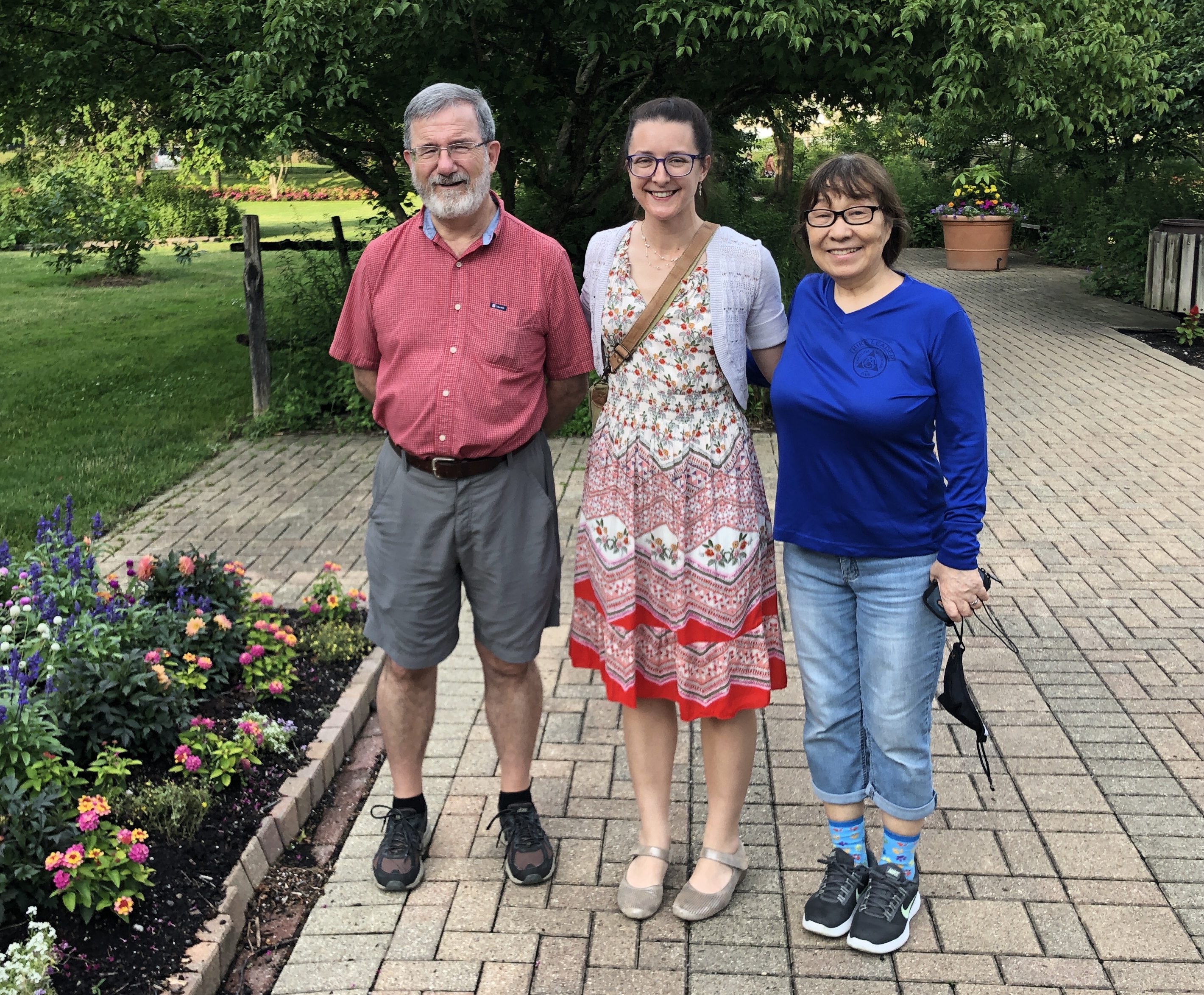 The parents met us in downtown Valparaiso after the Friday work day. The skies were cloudy but the rain had stopped so we walked from the library to our favorite restaurant, Meditrina Market Cafe, where Sawako told the waitress that she could eat this meal every day! We enjoyed an appetizer of roasted eggplant crostini and falafel with chicken shawarma. Delicious and fulfilling, we walked off dinner at the library garden and the Ogden Botanical Gardens in Valpo. Sprout sniffed the newcomers at our apartment, making a friendship with Mom while we watched “Ramenheads.” Sprout loves playing with Sawako!