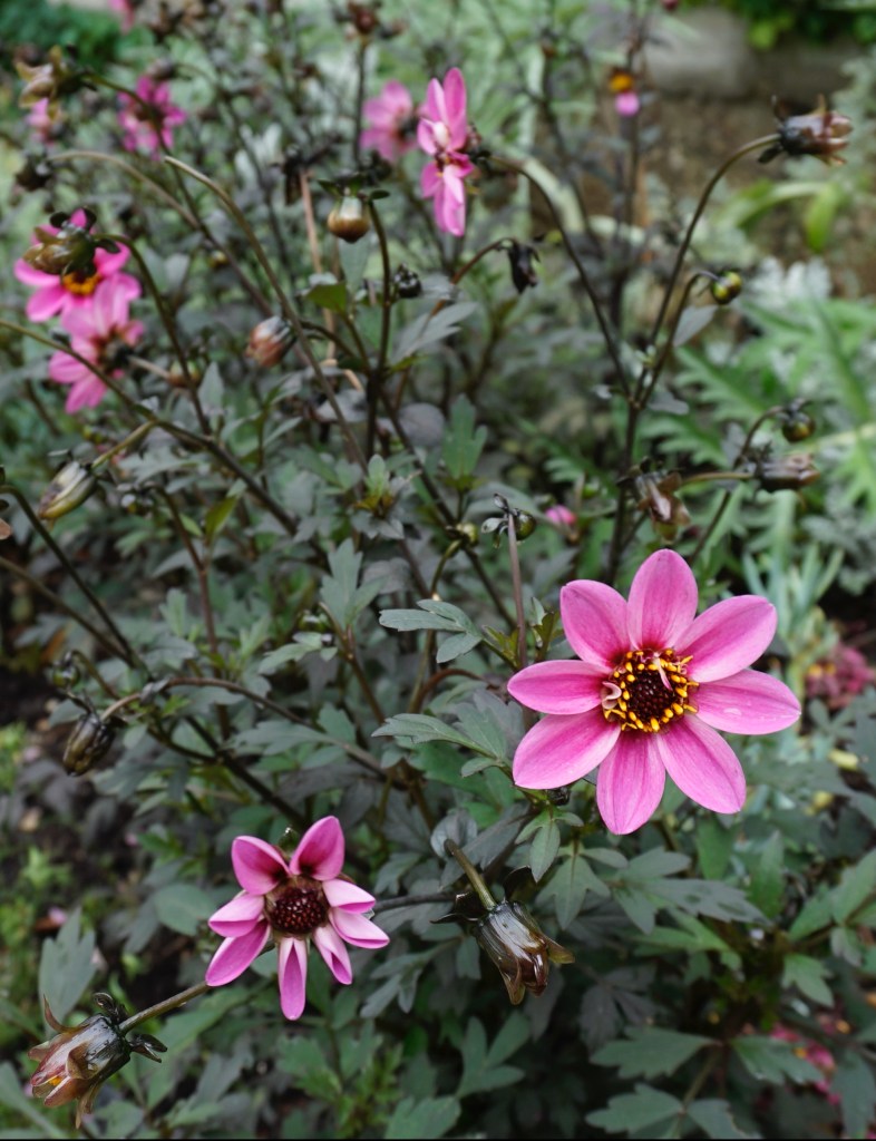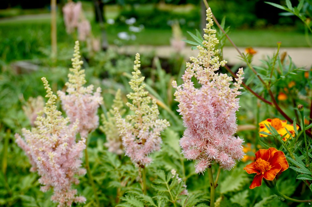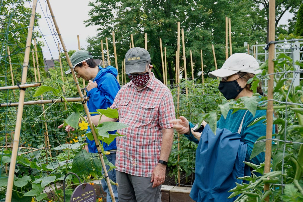 We had a short window of time to walk part of the outdoor gardens while the weather took a break before its next showering. The demonstration garden was the most impressive garden for me to see the flowers, herbs, fruits, and vegetables from raised beds. I liked seeing how the gardeners created ways to secure tomatoes and save space within a small area.
