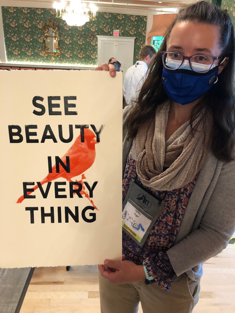 I spent my days taking technique classes like screen printing, kinetic sculpting, watercolor, and photo transfer processes as well as diving into seminars where I could apply best teaching practices to my art room. I learned how Social-Emotional Learning is reflected by the type of classroom environment I am creating as well as reshaping my students’ self-talk as artists with “I am” statements and “5 Mindful Minutes” every day. The National Art Education Association president, Dr. James Haywood Rolling Jr, gave an inspirational keynote on anti-racist art teachers setting the tone of purposeful intention in our curriculum to break the status quo of passivity.