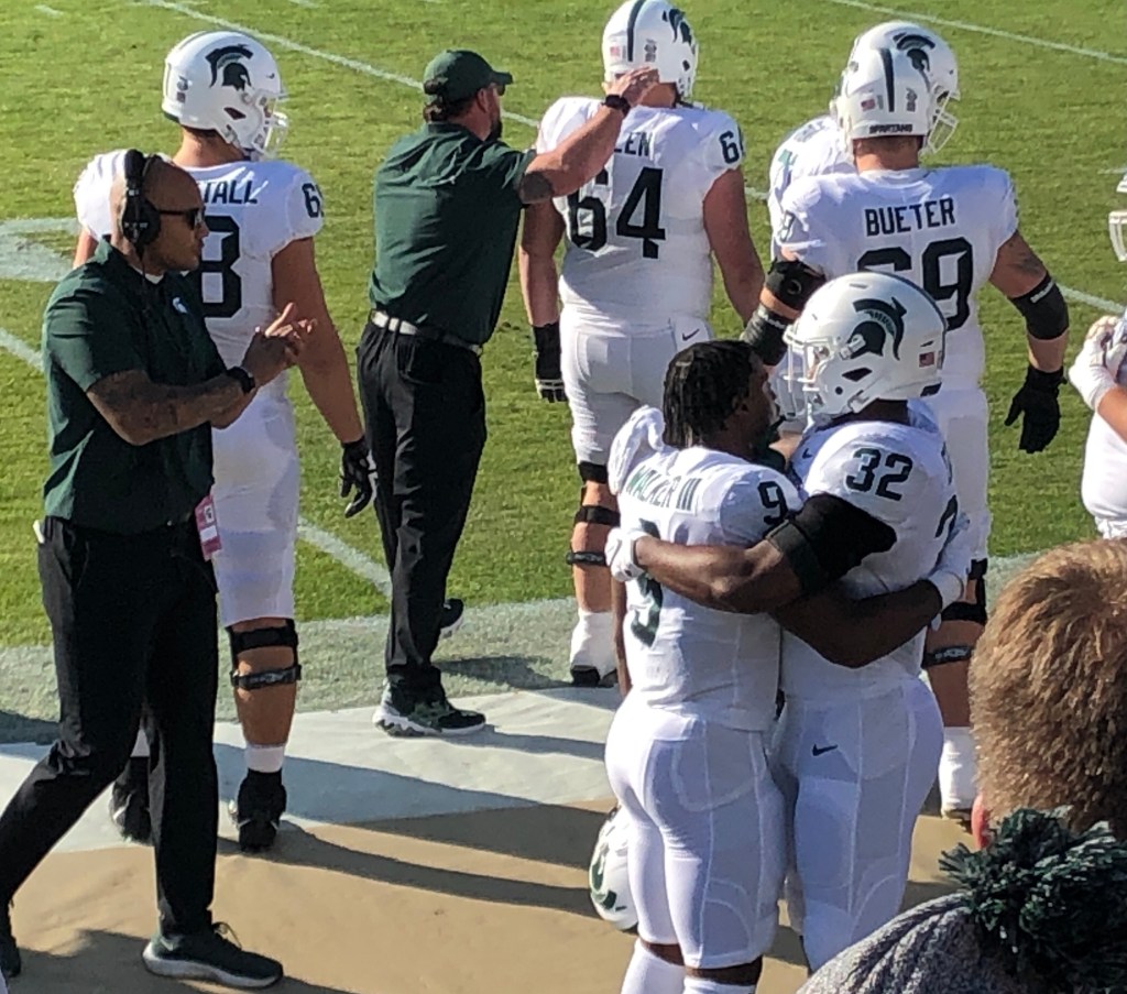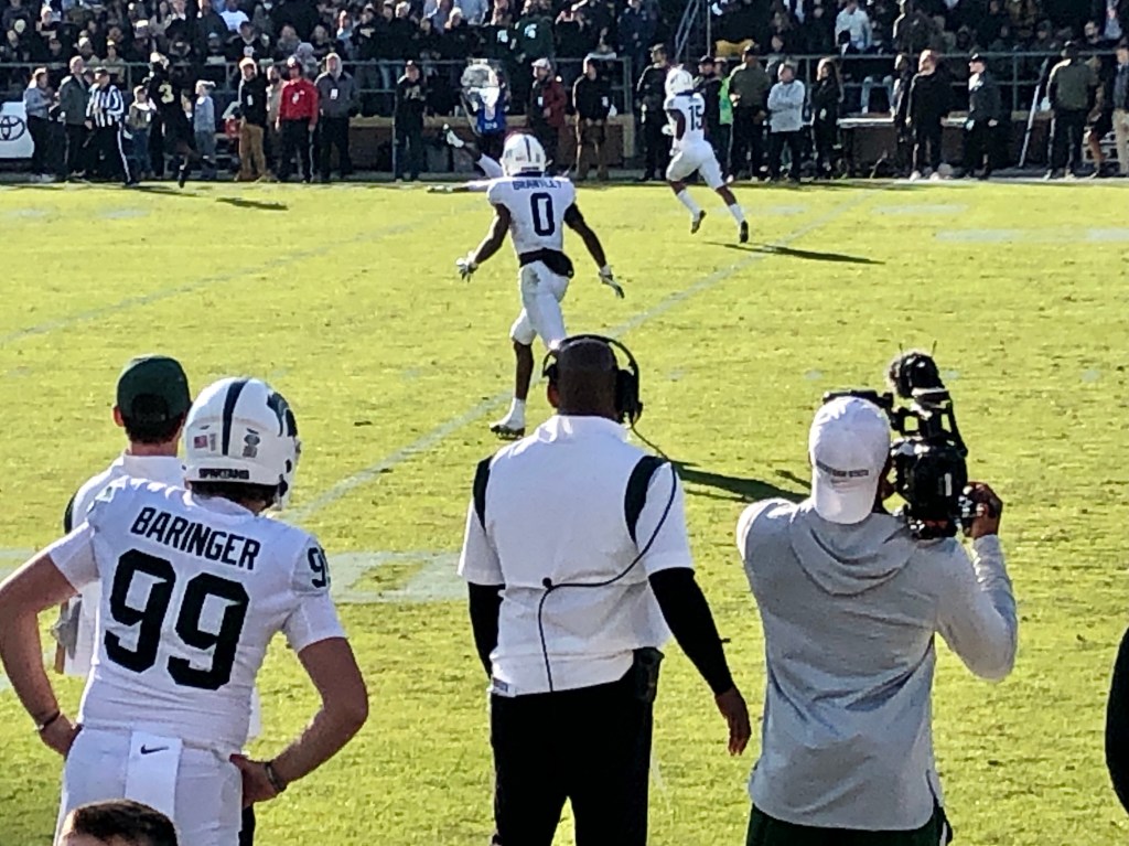 Purdue gets the credit for playing a fantastic game with an unstoppable wide receiver, Derek Bell #3, who delivered great plays throughout the game. Coach Tucker said in post-game press conferences that “all of our goals are ahead of us” and that “we’re going to block out all the noise.” The Spartan team will need to hit the ground running for Maryland and let this game sit in the past so they can keep “chopping wood” and push forward. It was disappointing to witness our first loss of the season but also a charged environment to be a part of and support the Spartans on the road. Go GREEN! GO WHITE!