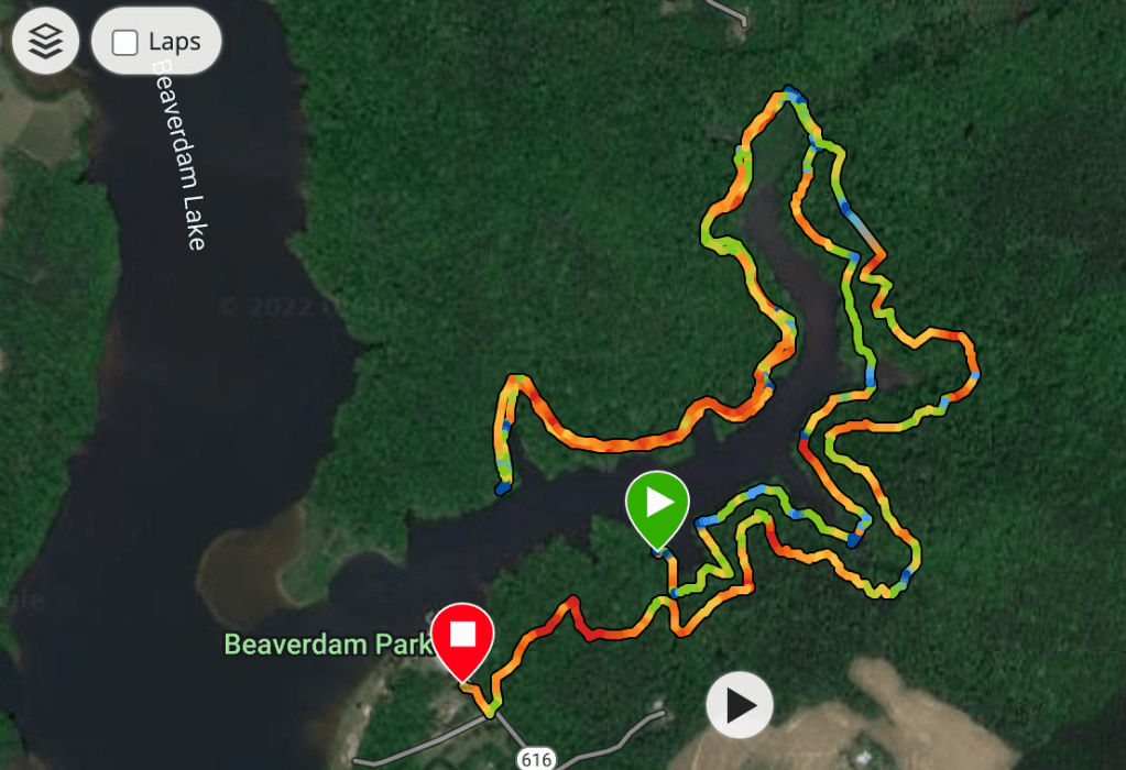 There were many loops and splits in the multi-use trail that needed consulting with the map but the trail was marked well enough with signs directing to side trails by nearby roads that we were able to make an out-and-back route of 5.5 miles. On our return route, we had to watch our footing with fresh horse droppings left behind that dotted the multi-use trail. While the trail included 5K markers for the cross country course, it was more of an intermediate level of hiking difficulty that I would find very challenging to race with the elevation and roots. Gloucester must have some talented runners on their team!