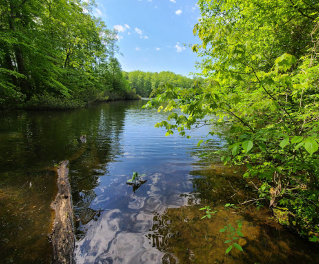 The park has over nine miles of trails that surround Beaverdam Reservoir including multi-use trails for hiking, biking, and equestrian riding. There is a 5K trail marked for the home course of the local cross country team from Gloucester High School. People also come to Beaverdam Park for freshwater fishing and kayaking. When we arrived, there weren’t many others at the park as we signed into the trail log. With the possibility of rain, Derek and I layered up with long pants and rain jackets in the breezy 72° weather with overcast skies.