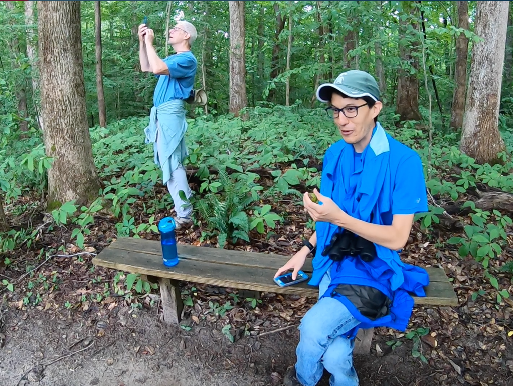 The shady forest floor was covered by the treetops allowing for many varieties of mushrooms and ferns to develop. Derek took on the role of a naturalist by documenting each unique species that he spotted along the way and asking Dale if he knew what they were. He also kept the Merlin Birding app running on sound identification throughout the hike to let us know which bird calls we were hearing. Besides the flight of a Great Blue Heron from the reservoir, we didn’t see the birds on our hike since the trees were so tall.
