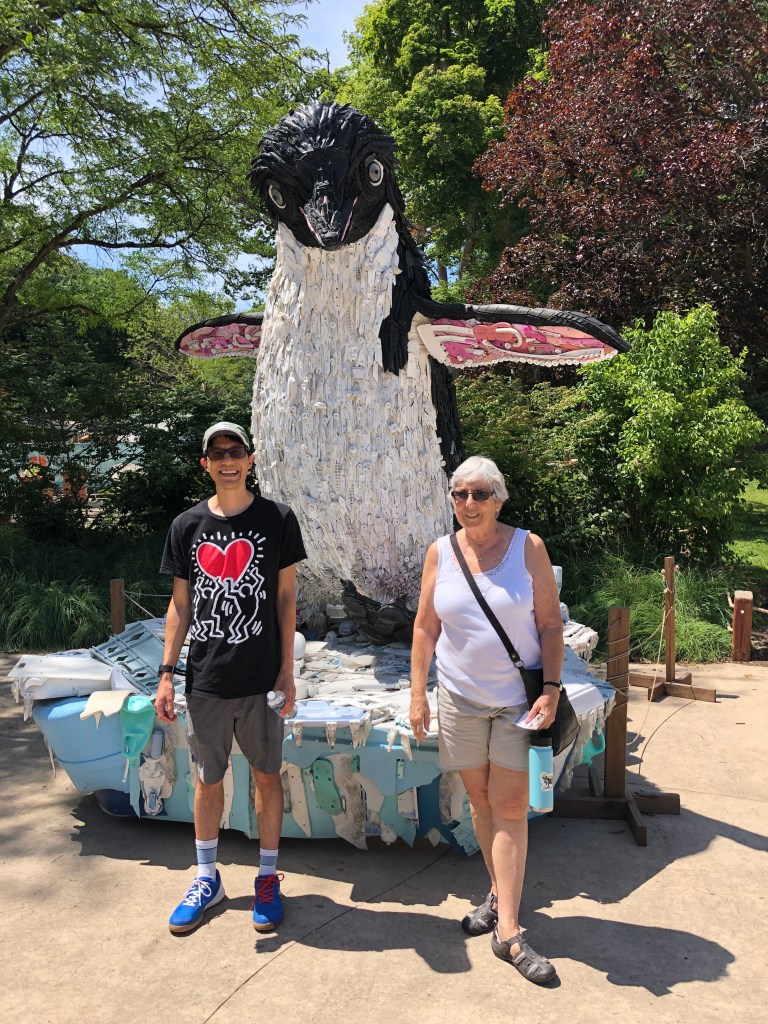 The John Ball Zoo in Grand Rapids, Michigan has been a place of nostalgia for us since we first visited almost a decade ago in 2013. Derek and I have made a lot of memories together going to zoos, aquariums, and wildlife sanctuaries over the years which has evolved into our passion for birding on our travels. Our love of animals also comes from childhood experiences. I grew up looking forward to zoo visits with my family and Derek volunteered at an animal shelter as a kid in Asheville, NC. When Aunt Jackie invited us to join her for an afternoon at the John Ball Zoo to see the Washed Ashore: Art to Save the Sea exhibit, we were excited to visit with her. We have run the Kent Trails that go past the zoo many times when visiting family in town but it had been a while since we had made a zoo trip.