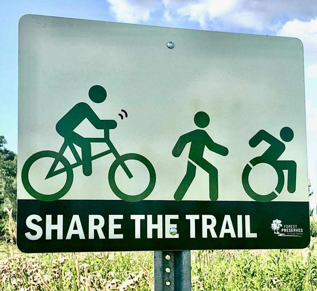 I wouldn’t cross this trail off completely but I also wouldn’t take my bike on it again. The main loop is 7 miles and it would be a great place for us to run. We saw many runners along the ride that morning and I could tolerate cyclists going around me if I hugged the edge of the path on foot. It just seemed a little too dangerous for a long ride without the worry of crashing into an oncoming cyclist or one who was passing us while also braking suddenly for a family walking with a stroller. I couldn’t fully relax, increase my speed any more than 5-10 mph, or really enjoy the ride because I had to keep checking behind me and looking ahead around the corner for an opportunity to pass while calling out “On Your Left…2 bikes” over and over again to warn the people we were passing. Some trails are made more for pedestrians than bikes, which is one reason why cyclists are not allowed to ride the sidewalks in the City of Chicago unless it is specifically marked as a bike path. The Busse Woods Trail may just be one of those bike trails that cannot be safely shared when there are so many people using it.