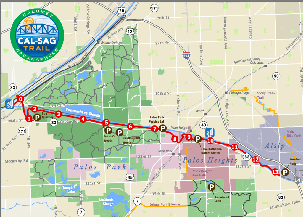 Since we had made the drive out to the Chicago area and still had fresh legs, we decided to ride our favorite path, the Cal-Sag Trail, on the South Side of Chicago along the route towards home.