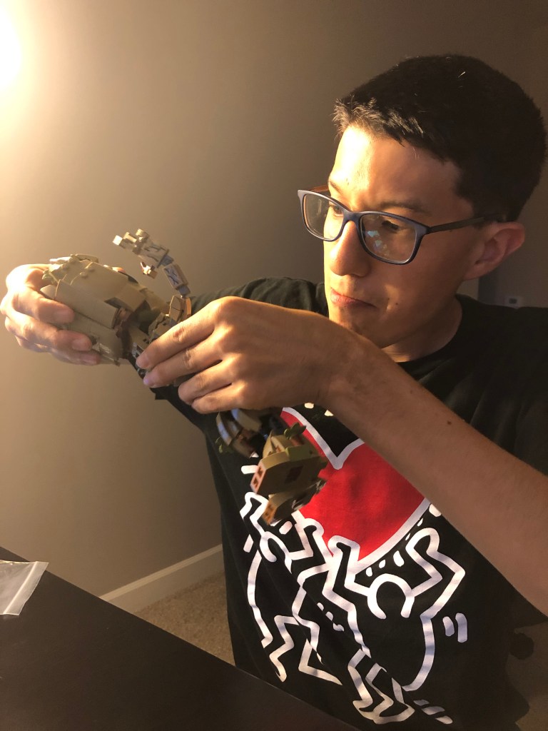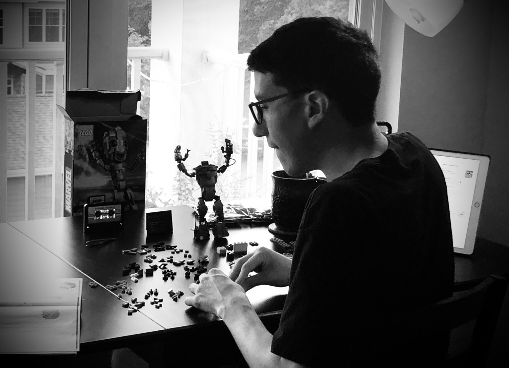 It seemed as if the tracking updates couldn’t disclose enough timely information for Derek as he anxiously awaited his package from Lego to arrive. When we returned home from running a few errands, the unassuming brown box with his name on it was a delightful surprise. He dashed up the stairs and ripped open the box with a beaming smile on his face while admiring the packaging. Derek’s desire to create with his puzzly brain brought back memories from building countless lego sets as a kid.