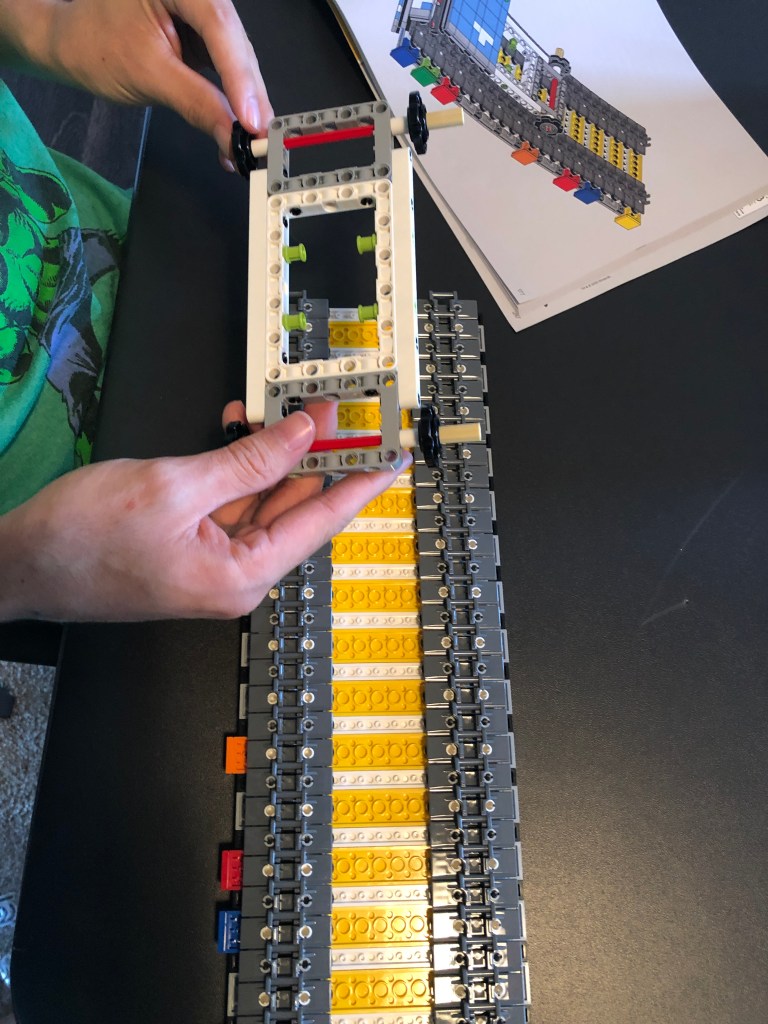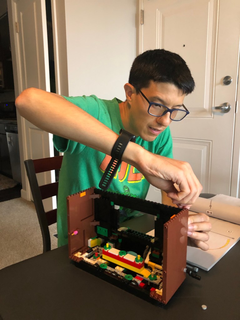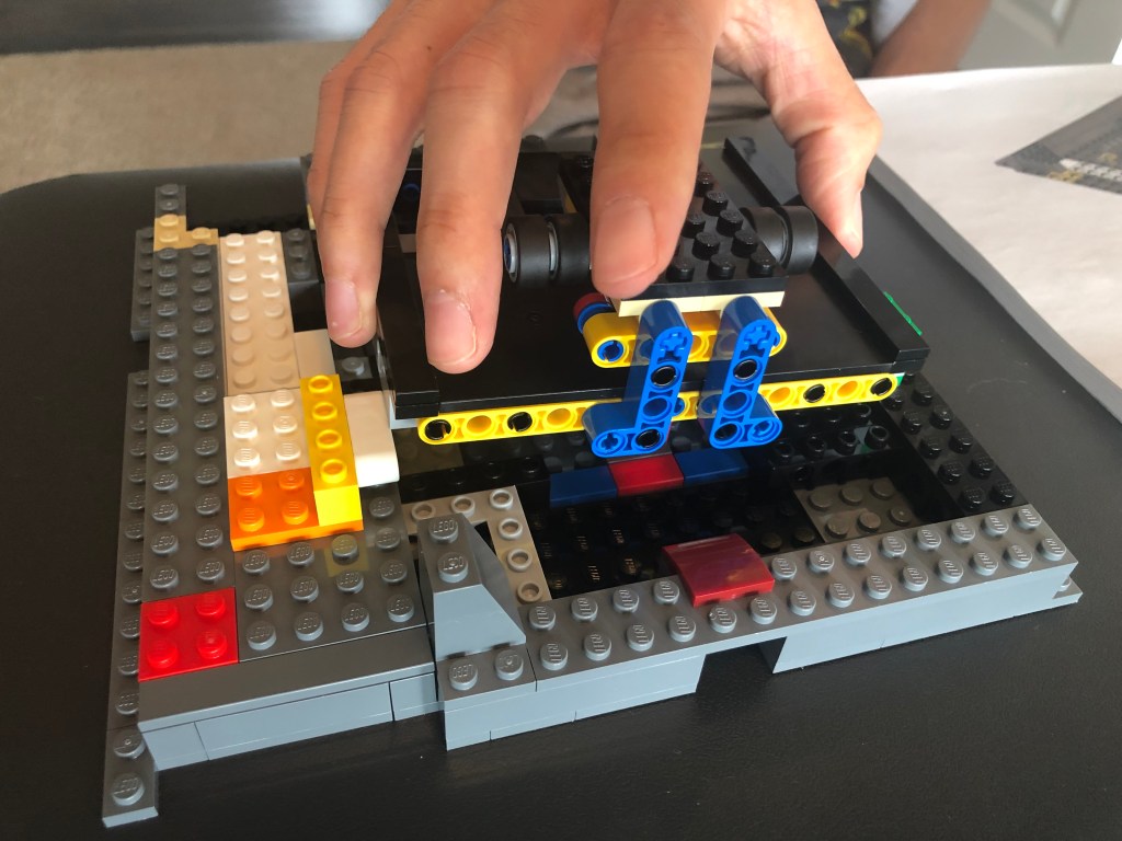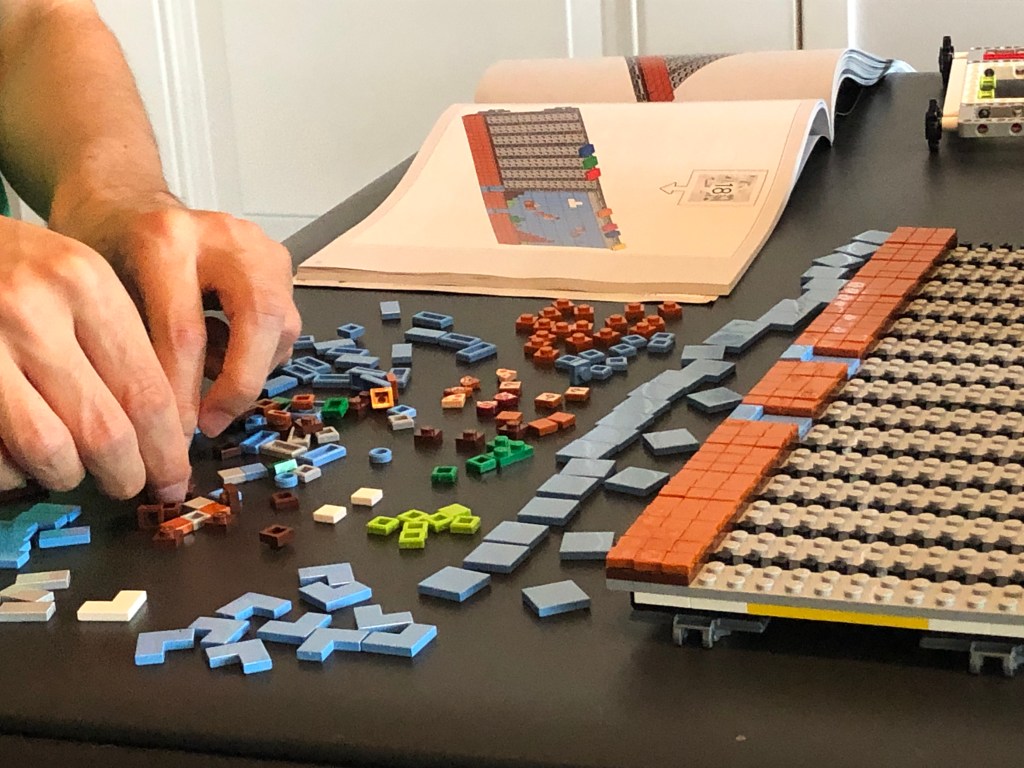 The unique challenge with the vintage TV is the functional scrolling screen to demonstrate Mario’s pathway in Super Mario Bros. The LEGO designers created a TV with all the moving parts that scroll reliably without clashing and a gearing system with a hand crank that smoothly rotates the screen. Derek not only had to build the TV structure, but assemble the inside of the screen with its moving lego panels. If not completed correctly, this function does not work as the designers created it.
