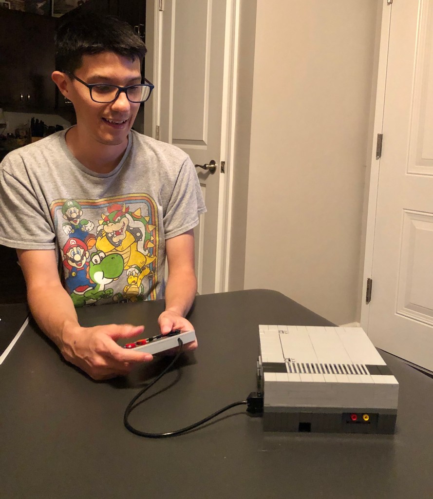 When the time was right, he ordered the Nintendo Entertainment System for an expert level kit more than five times the size of Groot’s 476 pieces with a total of 2,646 lego components!