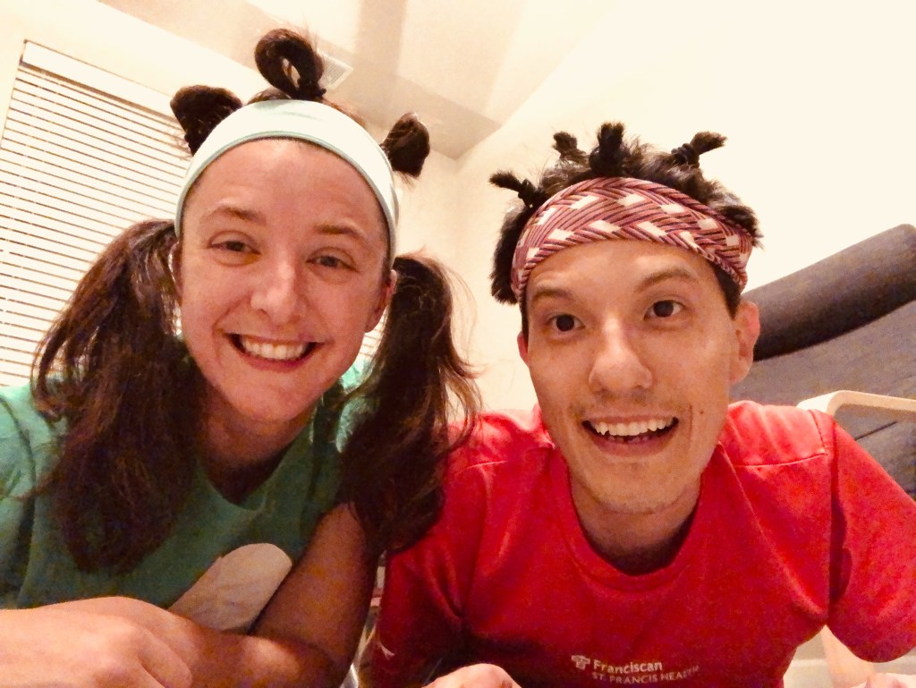 The last time that Derek and I dressed up together was for New Buffalo’s Spirit Days during Homecoming Week and the CAPS Superhero 5K race when we ran as Batman and Robin in 2015. We decided to bring back the tradition this year because of our Monday game nights with the Northwest Indiana Board Game Association which meets on Halloween this year since 10/31 falls on a Monday.
