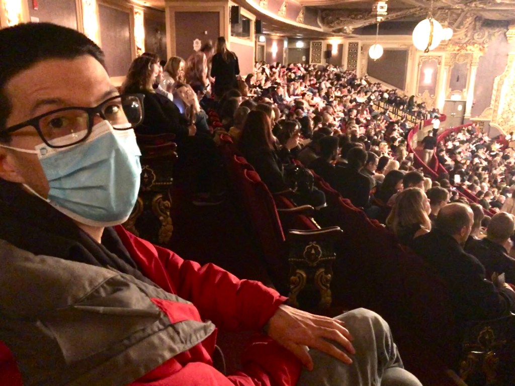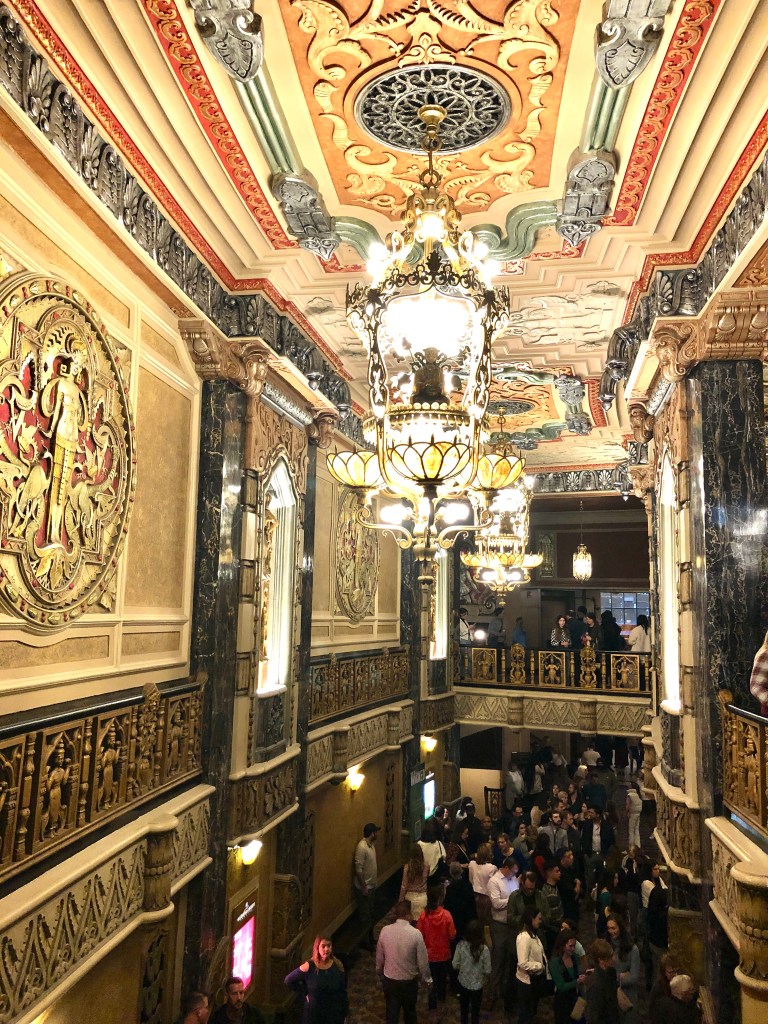The Nederlander Theatre on Randolph Street is a historic building known as the Oriental Theatre. It was first built as a movie palace in the Roaring ’20s for silent films accompanied by organ as well as vaudeville and live jazz performances. The architecture was inspired by an East Asian theme with mosaics, exotic animals, and golden figures. In 2019, the Oriental Theatre was renamed because it was the “right thing to do” after James M. Nederlander in honor of the founder of Broadway in Chicago who was a legendary supporter of broadway productions for over six decades. It felt as if we were going back in time when we walked up the steps to find our seats.