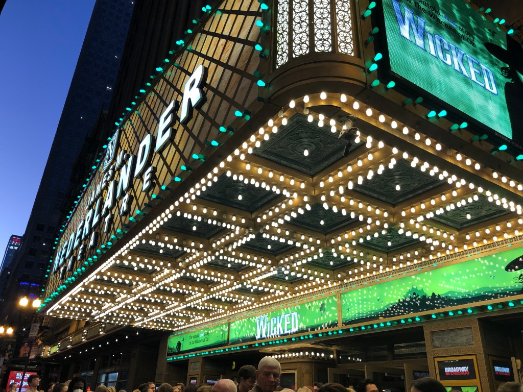 This past summer when Wicked was being advertised to return to Broadway in Chicago, I knew that we had to see it together. Derek and I are big musical buffs but he had never seen Wicked before. While downtown for another production, we bought our tickets from the Box Office to avoid the extra fees on Ticketmaster. We didn’t realize that at six months out, the show was already selling out. We were lucky enough to get two tickets together in the last row of the auditorium in late November. Wicked is a big deal in Chicago!