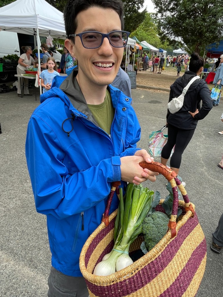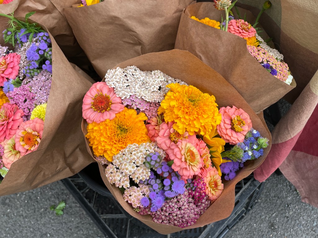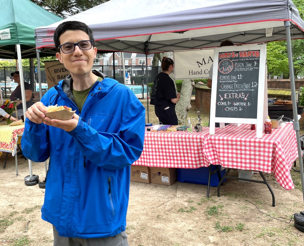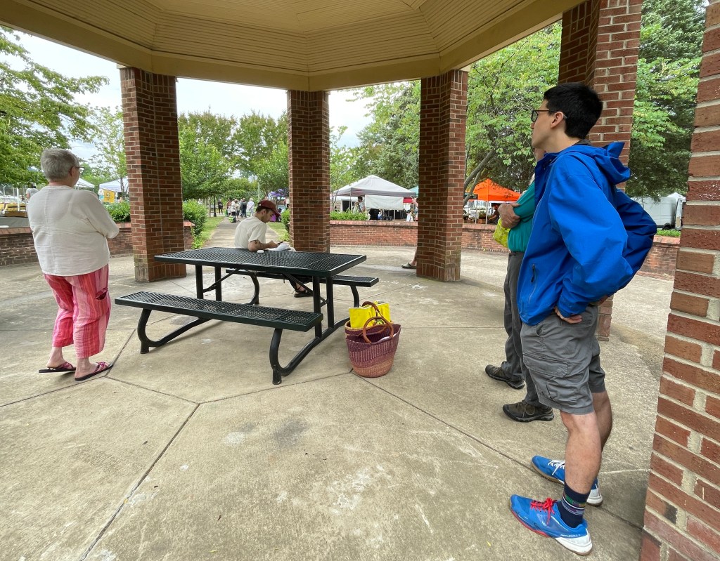 Our first stop was the Birdhouse Farmers Market opening promptly at 3:00 in the afternoon. We were among the customers eagerly awaiting the signal to enter the market while lining up on both ends of the sidewalk. Dale and Ginny made a beeline for their favorite vendors for broccoli, tomatoes, onions, peaches, and more! We also sampled one of the best brats we’ve ever had from Mr. Mayor’s small batch sausage company.