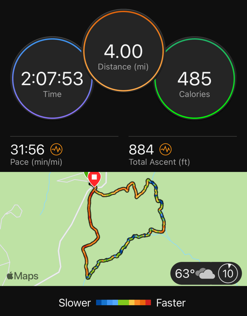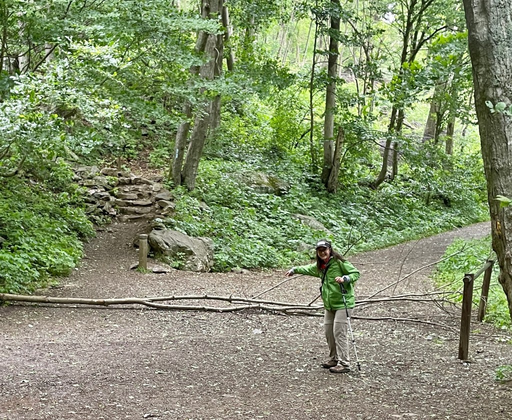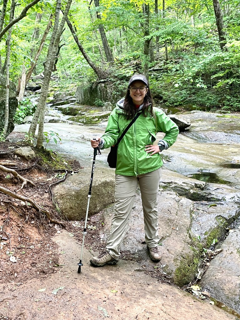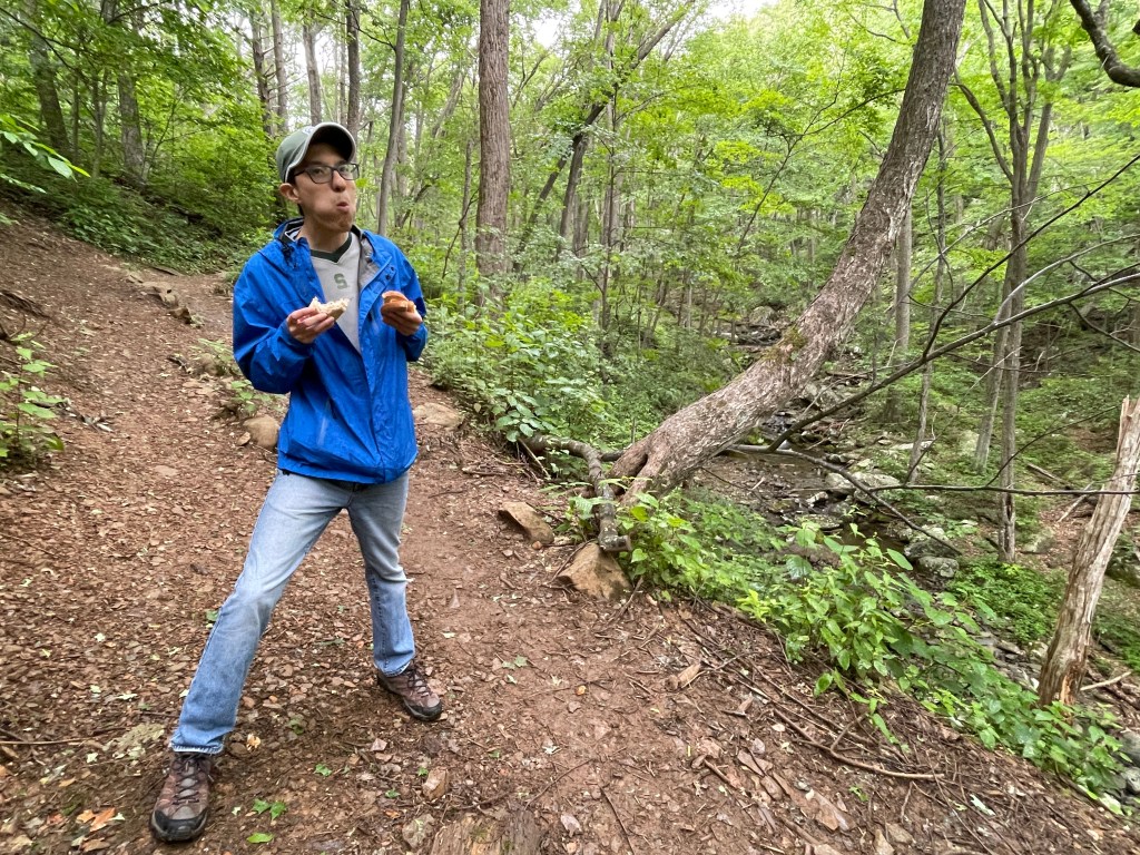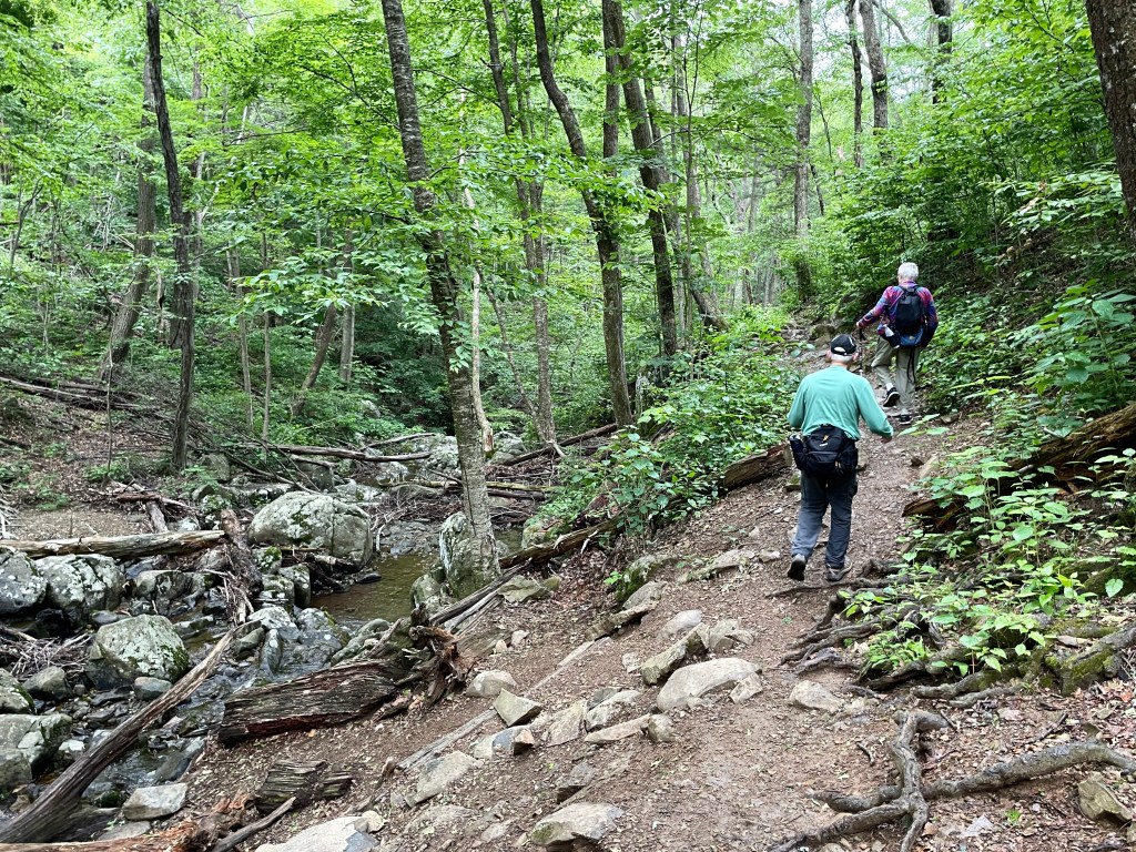 We took a break at the halfway point 2 miles in for a photo while mustering our energy for the uphill climb awaiting us back to Fisher’s Gap.