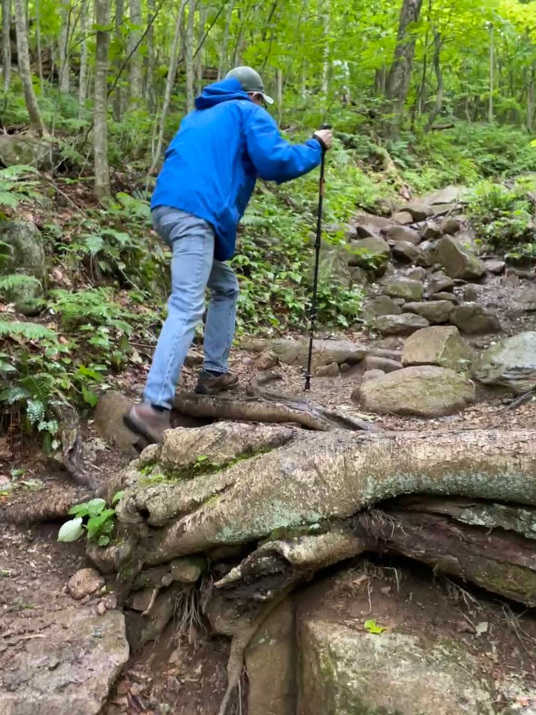 It felt like early spring instead of summer with the cool air on our cheeks as we kept up pace using our hiking poles for support on the slippery rocks.