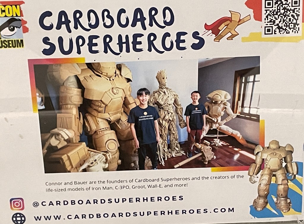 Some of the upstairs exhibits were in the making for the following week’s annual Comic-Con festival where we got a sneak peek at life-size cardboard superheroes created by brothers ages 17 and 14 who began building these sculptures in elementary school.