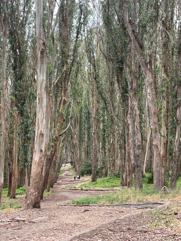 On our first day in the park, we hiked the Andy Goldsworthy Trail along Lovers Lane where the artist created a winding line of tree trunks as a single “Wood Line” with the help of a construction team. Because of the ease of accessibility at Presidio, we returned to the park another day after driving back over the Golden Gate from a day of hiking at Mount Tamalpais to park our car in the hourly lot and take the public transit from Presidio downtown for dinner.