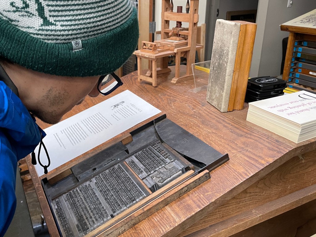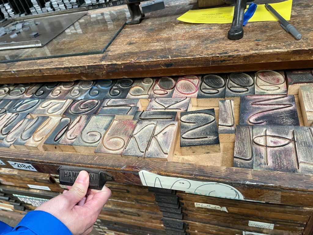 This unique studio is a non-profit organization that fosters the art of letterpress printing and bookmaking. Book artists are part of a studio community in this space using traditional printing methods. The center also offers workshops for all experience levels. This place is very unique but one of the unusual processes we learned about is their annual Roadworks Steamroller Printing Festival where relief printmakers create large-scale prints using a 7-ton steamroller over linocut plates. These steamrolled prints cover the walls of the center, many of which have been made by local artist, Rik Olsen. We marveled at the drawers of individual letters and old-fashioned printing presses that filled the studio.