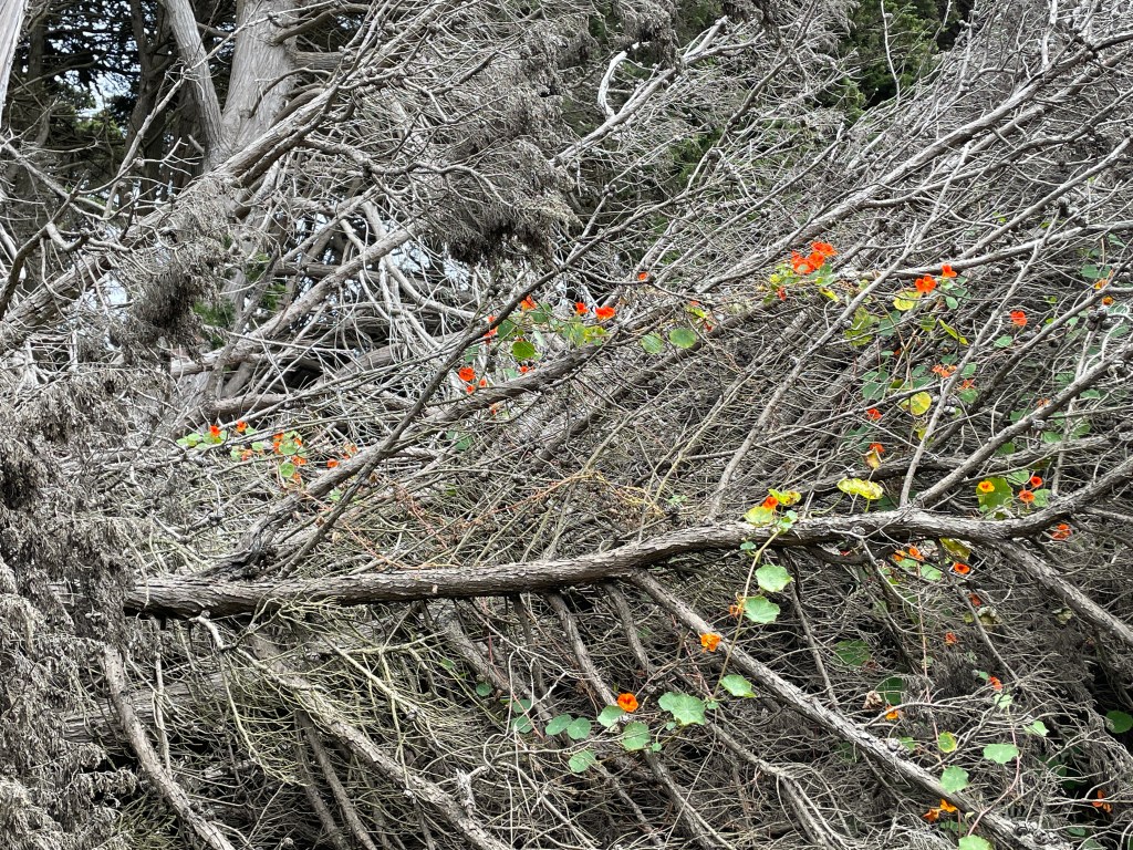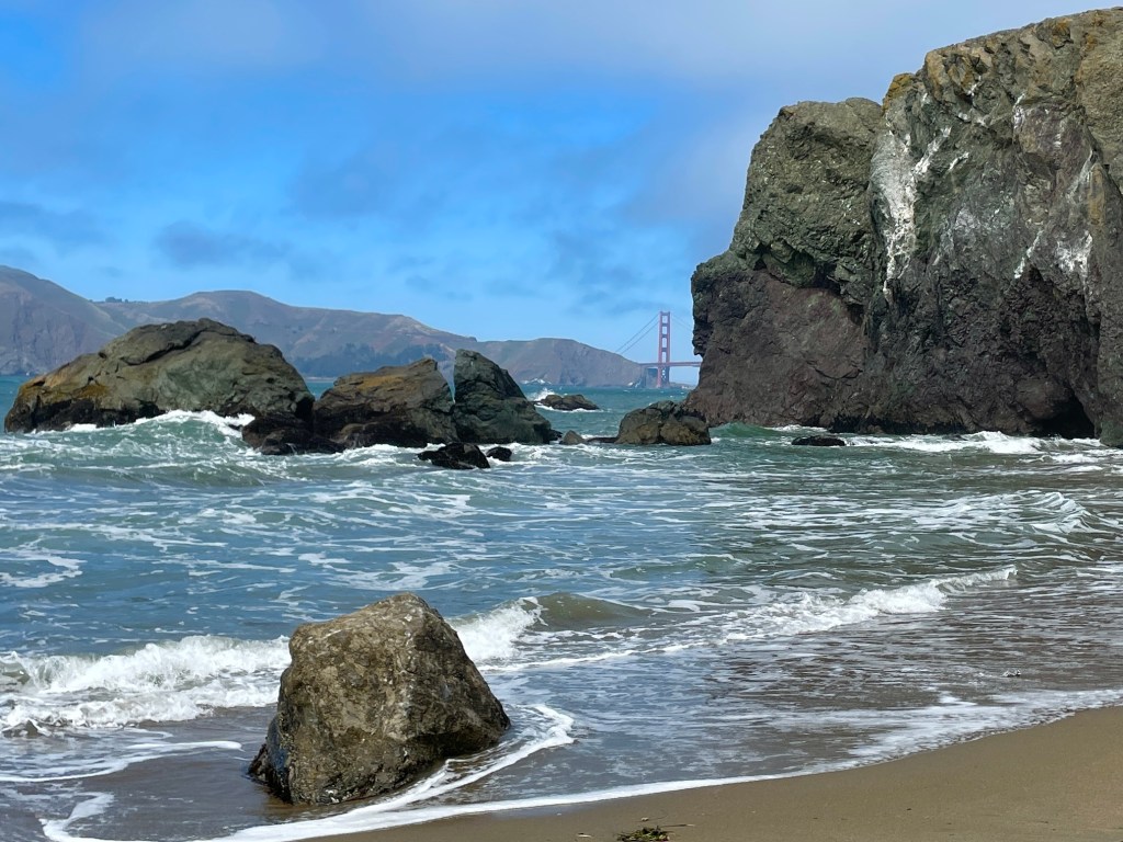 The Land’s End coastal trail winds high above the seashore with gnarly cypress and eucalyptus trees rooted in angular directions on the edge of rocky cliffs. There are spectacular views of the bay and Golden Gate bridge from the trail. We also hiked down the steps to the beach at Mile Rock. Nice easy 2 miler trail easily accessible from the city!