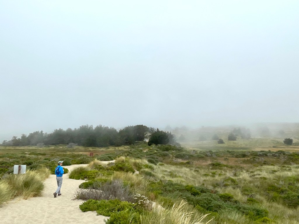 Ready for another road trip on our last day in California, we drove from about an hour north of the Golden Gate Bridge to the Bear Valley Visitor Center from our hotel in Mill Valley on the edge of the bay. As always, we started at the visitor center to review the trail options with an expert. We only had one day not including the travel time back to our hotel and we wanted a unique experience that we couldn’t get anywhere else. Our first hike was right by the visitor center but the trail was overgrown and pretty similar to our hiking experiences in the woods back in Indiana so we moved on to the Muddy Hollow Trailhead for a great birding location. This out-and-back 4 mile trail is an easy hike with a lush habitat for birdlife. We saw families of quail walking just ahead of us with their chicks and countless bird songs recording on our Merlin Bird app. The trail eventually skirted the edge of the Estero de Limantour where salt and freshwater mix in the marshes. The midway point climaxed at Limantour beach on the Drakes Bay of the Pacific Ocean. From there we retraced our steps back to our starting point.
