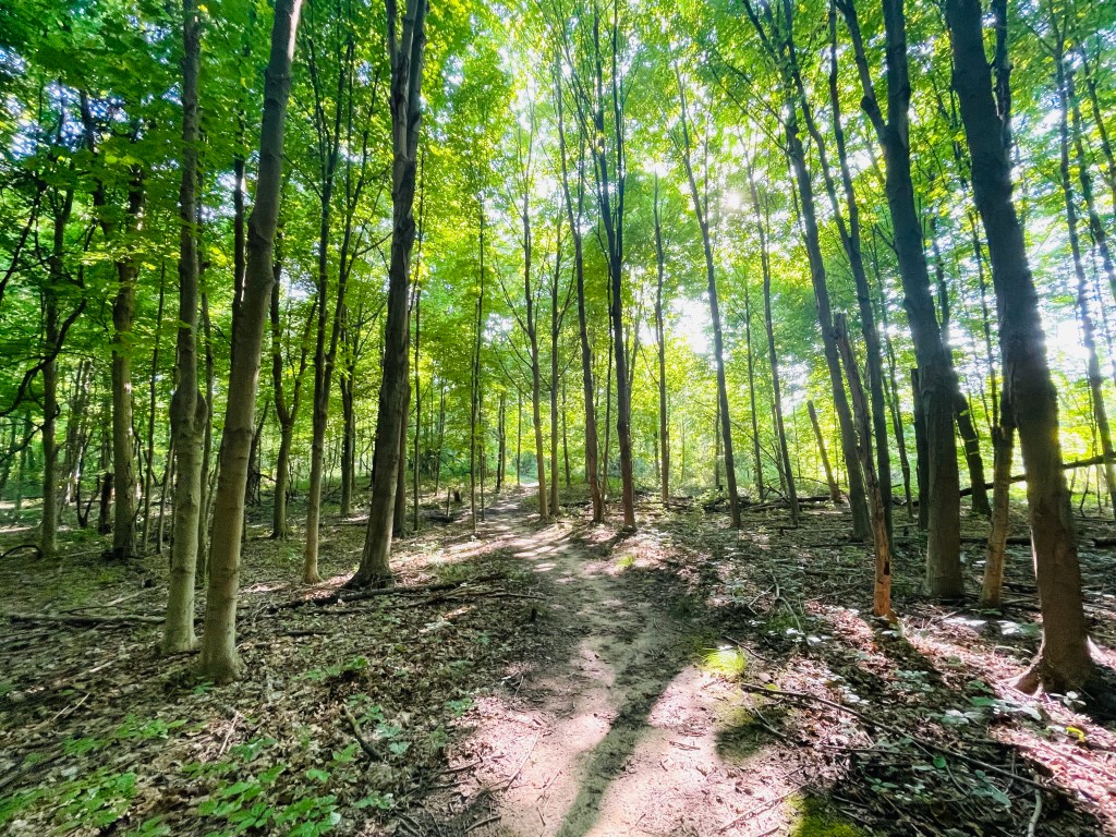 Trail #3 of the Indiana Dunes National Park 1966 Hiking Challenge is the Pinhook Bog in LaPorte, Indiana. The Upland Trail is a forest of Beech and Maple trees growing on top of a glacial moraine formed 15,000 years ago. The trail inside the bog itself was made from a depression in the moraine when a large piece of ice broke off the melting glacier. The bog is a relic of our glacial past, trapped in a foundation of rock, the acidic waters support sensitive plant-life like sphagnum moss, pitcher plants, sundew, and ferns as well as blueberry and holly shrubs growing in the forest. Accessing the bog is restricted to ranger-led hiking events to protect the fragile habitat so we hiked the Upland Trail of the 1966 Challenge instead.
