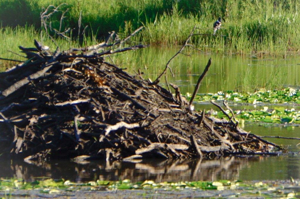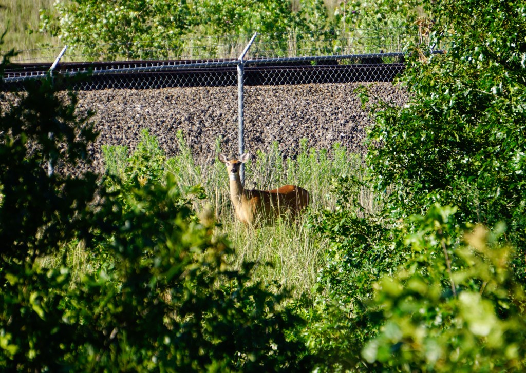 Hiking the Harbor Belt was both fascinating and mundane on the seemingly never-ending out-and-back stretch. The railroad trail is a flat, raised bed with large gravel stones overlooking the wetland valley below. Framed by the forestline of the oak savanna habitat, there were wildflowers and wildlife at every step we took. In the distance, we spotted a Belted Kingfisher on the edge of a branch atop a beaver’s dam stalking the water with calm and focus.