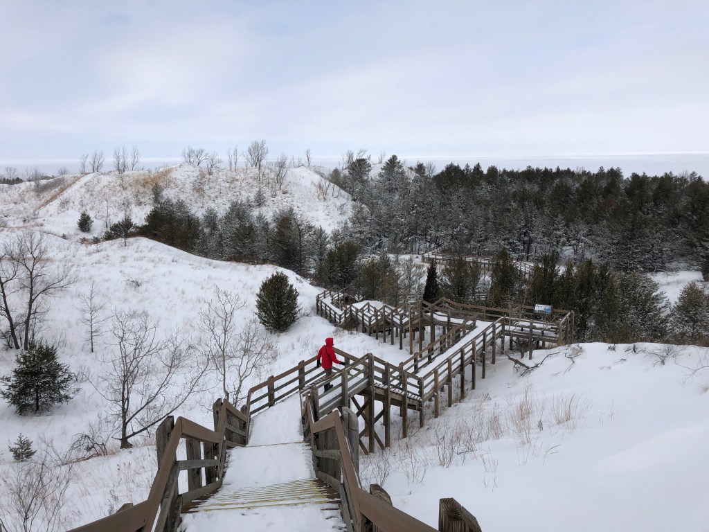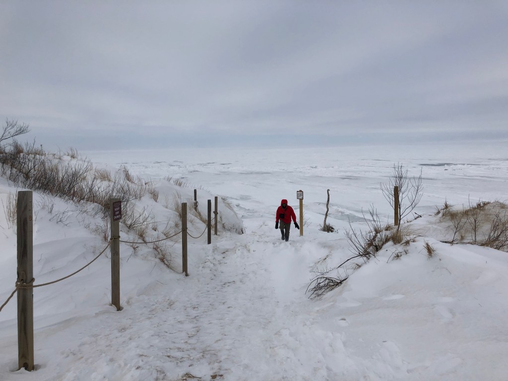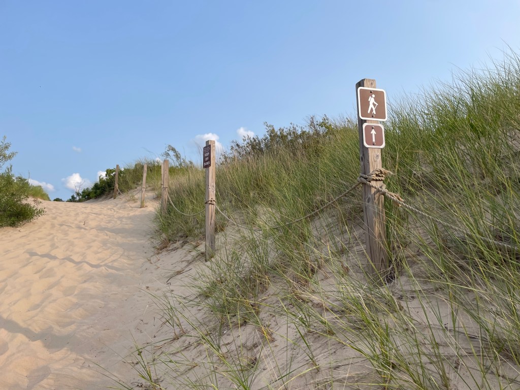 Loop 3 took us through some rolling hills as we made our way on the winding route back to the beach. It got a little buggy in the woods as has been the trend on our other hikes this season so we quickly whipped out our face nets to keep the mayflies away. I think we actually preferred hiking this trail in the winter when the sand was more compact and we didn’t slide with each step. Overall, this trail was a refreshing hike for us to unwind after a long trip away from home.